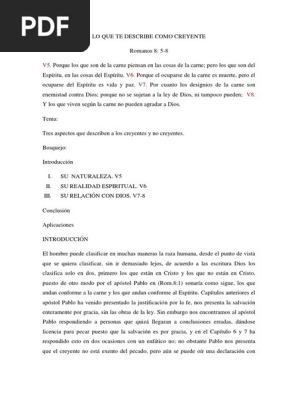 ROMANOS 8:1-17. a. Qué aprendiste de la lucha de Pablo entre la carne y el espíritu que te ha ayudado? - PDF Descargar libre